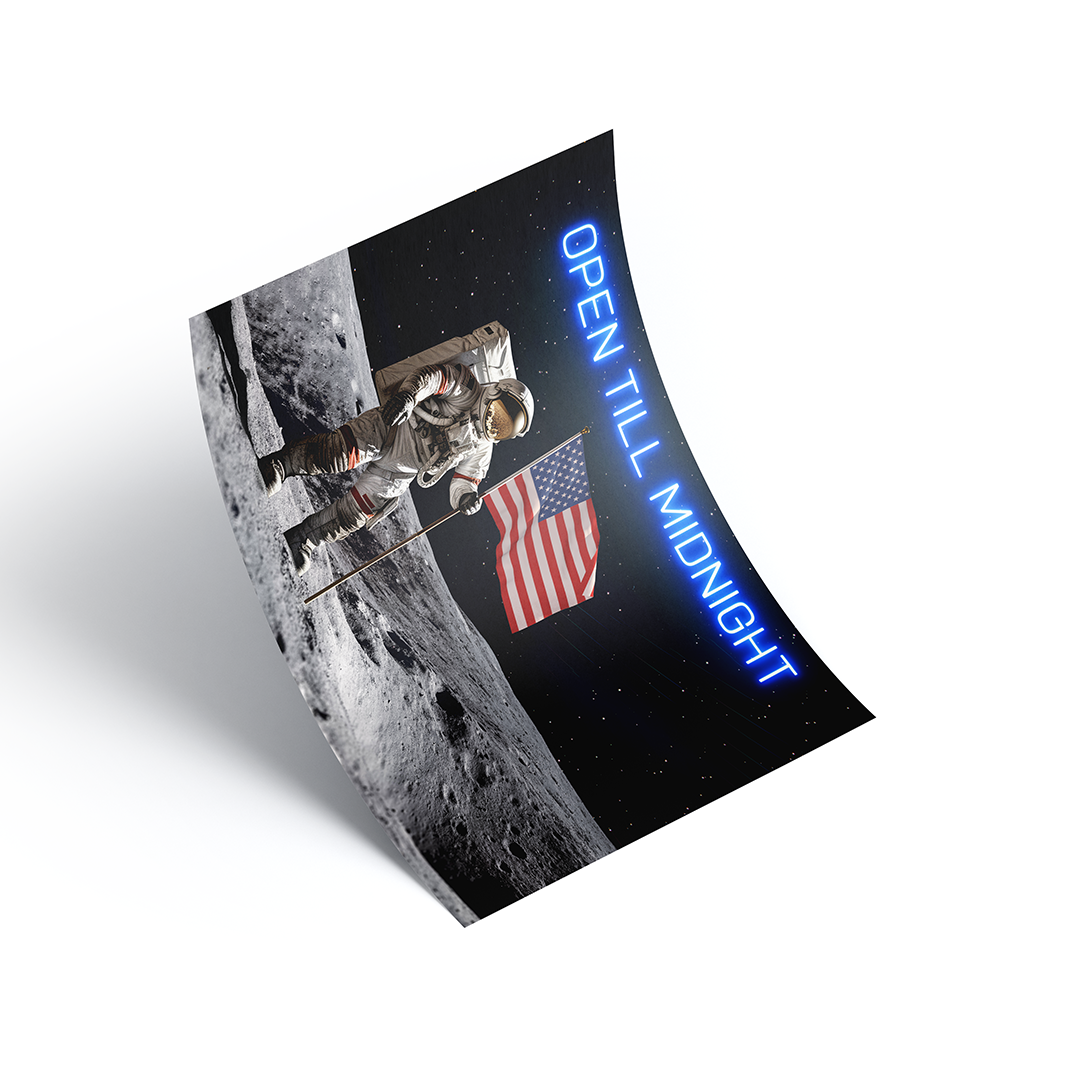 Explore the enchanting interplay of light and shadows in our luxury wall art pieces. From the graceful curves of the moon to the contemporary elegance of modern pop art, our collection transforms your space into a celestial sanctuary. Adorn your walls with the ethereal charm of our 'Open Till Midnight' artwork, and let the moonlit magic fill your surroundings.