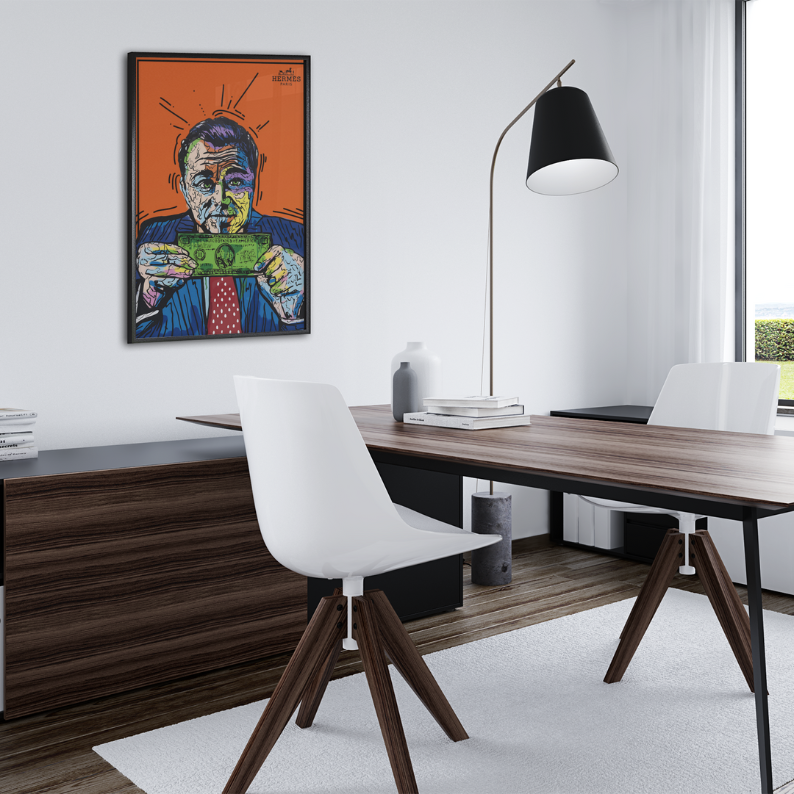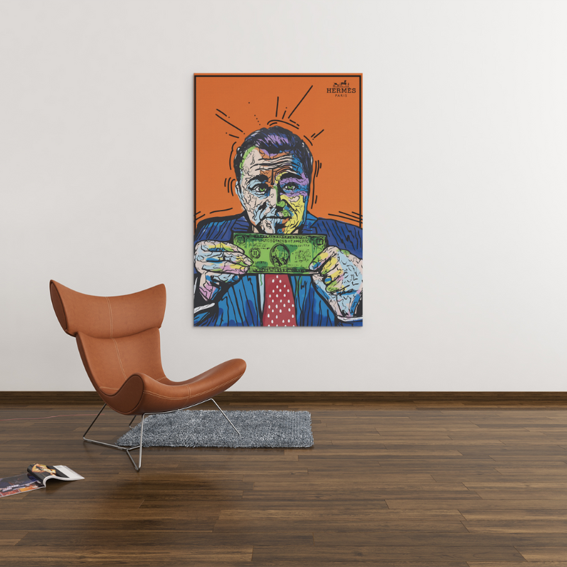 Immerse yourself in the dynamic energy of "The Wolf" Wall Art, a captivating homage inspired by the iconic "Wolf of Wall Street" movie. Elevate your surroundings into a motivational haven, replete with inspirational wall art and motivational artwork that embodies the essence of financial success.